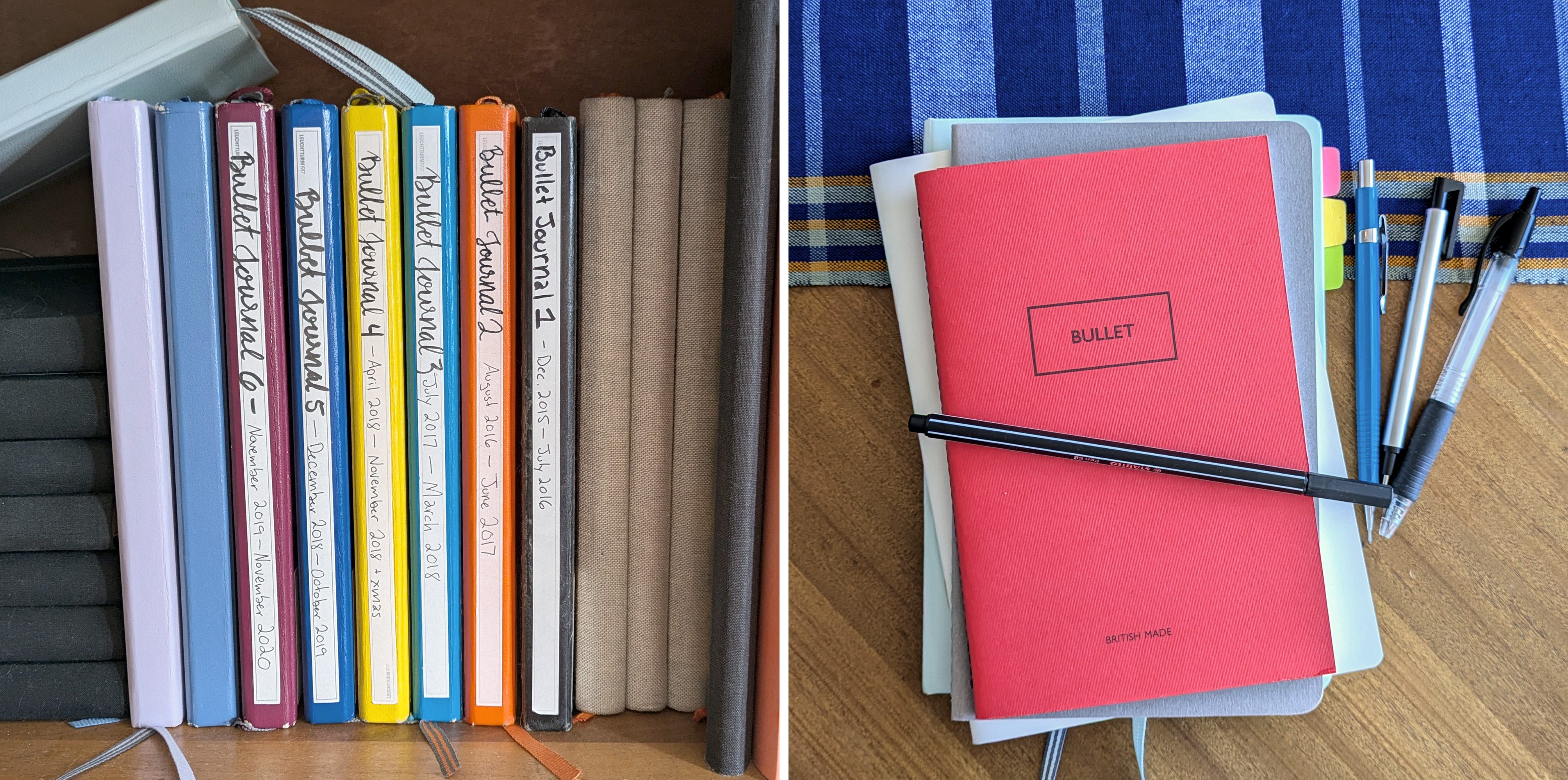 A big shift started to happen a couple of years ago, when I got my ADHD diagnosis. Looking back with this new awareness, I could see dot journaling had been an essential tool all along, and could recognize where I’d been unnecessarily hard on myself trying to fit into techniques that didn't match how my brain works. These journals have been one of the tools for getting to know myself.