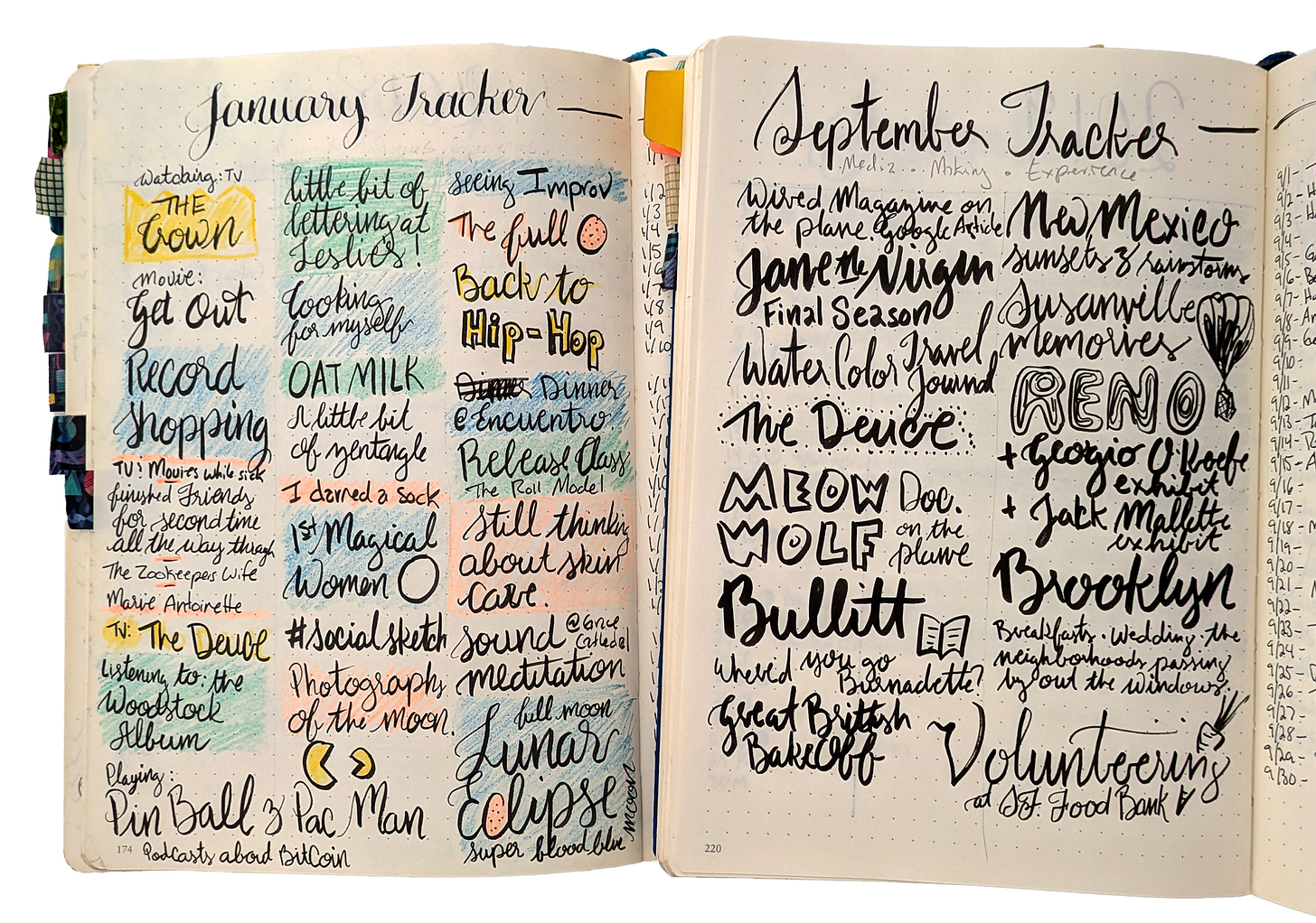 The way I think about dot journaling is that it’s not just one method, and it’s not for one thing. That flexibility is what’s allowed me to stick with it. When I first started, I used it in a very task-oriented way, like a self-made planner with an overview of what was happening in my month and lists of what I wanted to do.