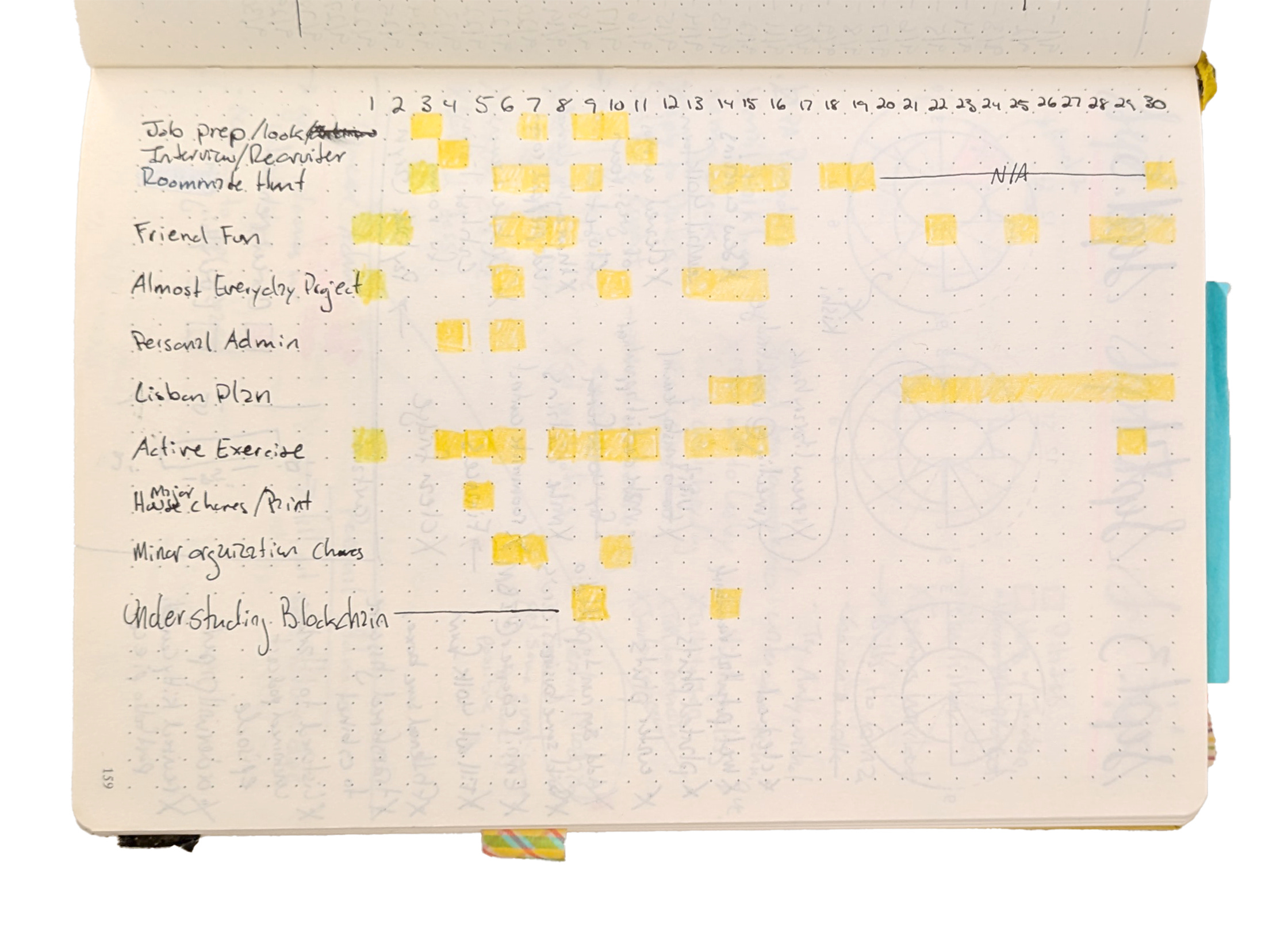 Seeing my 10 journals together, it’s a lot of daily-ish, weekly-ish, monthly-ish activities that add up to years. It makes the passing of time tangible and eases some anxiety around the question: What have I been doing?!
