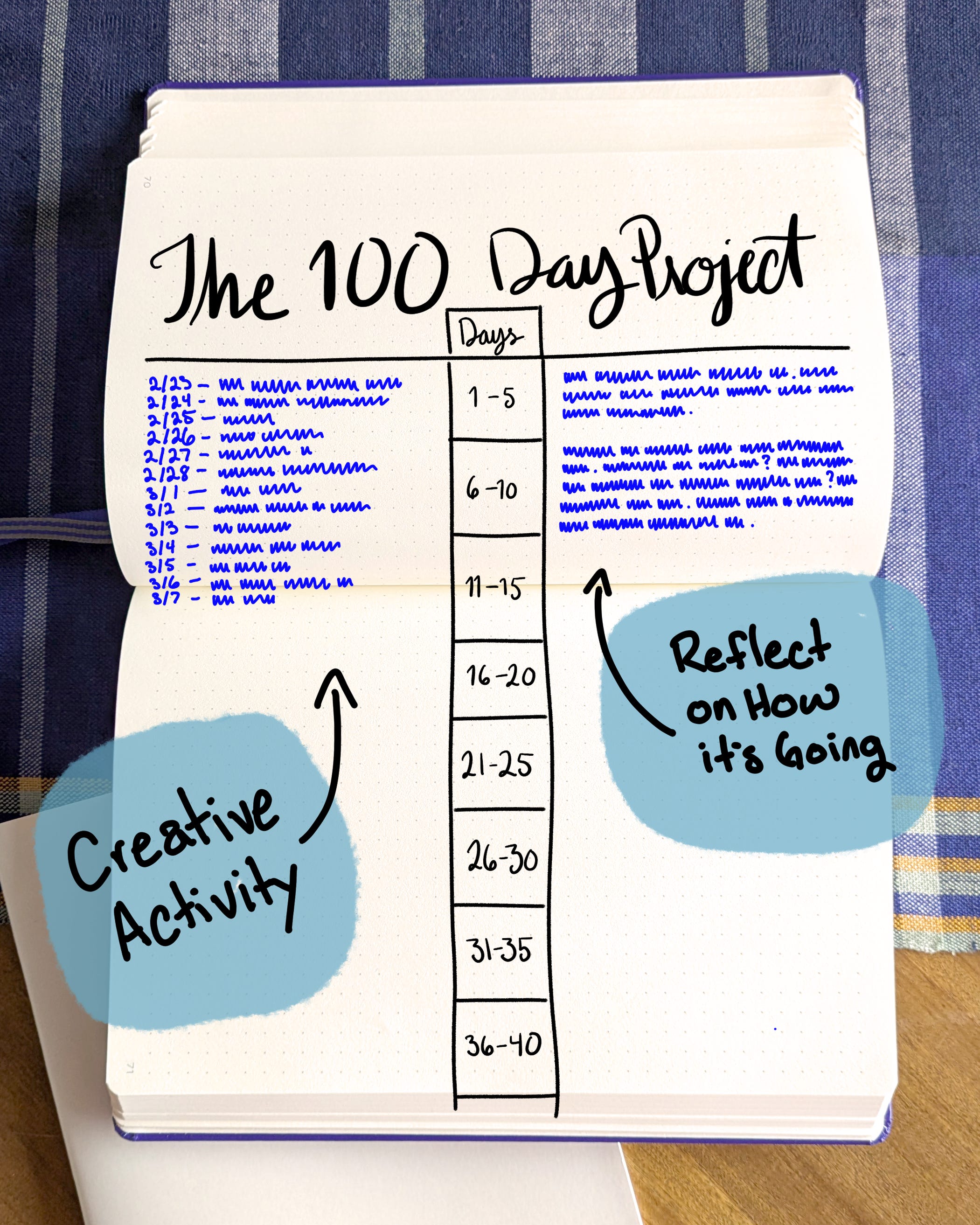 It can be incredibly rewarding to experience completing a 100 Day Project. The first project I outlined for myself was very simple. I found that after I knew I could complete a project, it was a lot easier to take on the tip I shared above. And subsequent projects have felt easier and easier.