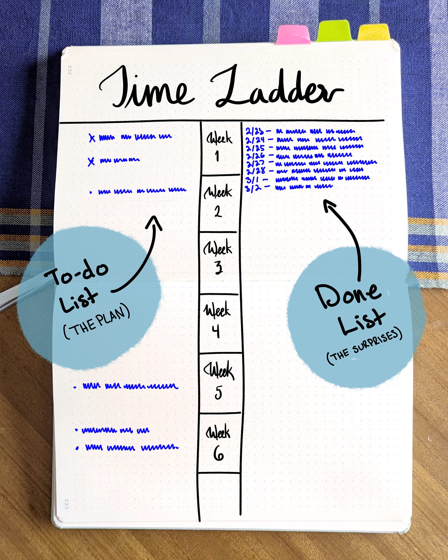 A time ladder is a way to see any project unfolding and acts as simple project planning. It can be used for projects with clear timelines or projects that are less defined.