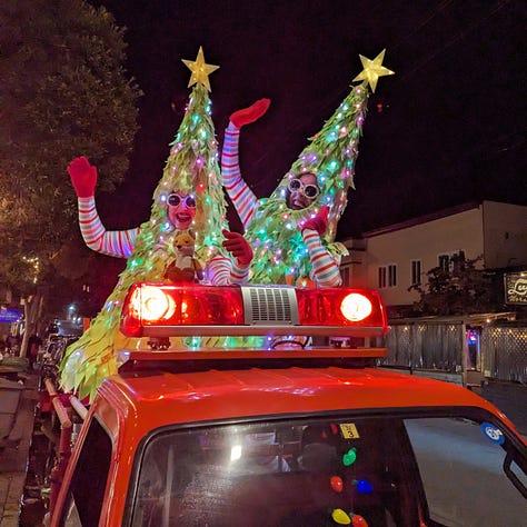 I’m grateful for this playfulness that’s become part of my holiday tradition. Visit @TreeTwins on Instagram to find the next neighborhood they’re visiting along with pics of all the shenanigans. Join them every Christmas Eve with the official San Francisco xmas tree at Mclaren Lodge in Golden Gate Park.