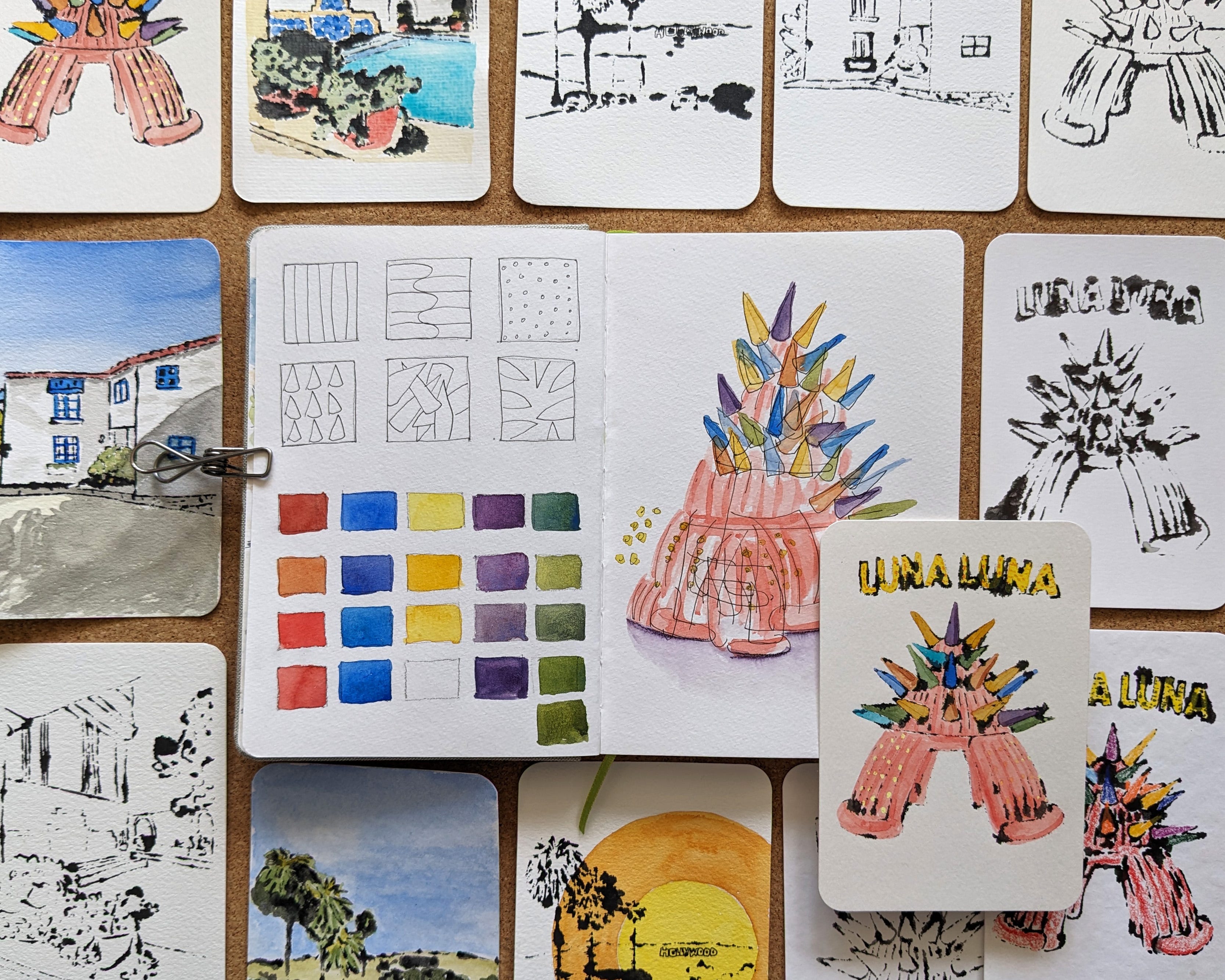 Gain a creative toolbox you can use as warmups to detailed drawings or for quickly capturing a memory on-the-go. Put it all together to create monoprint postcards using photos, ink, and watercolor. This is a great way to document and create your own souvenirs after travel or local touristing.